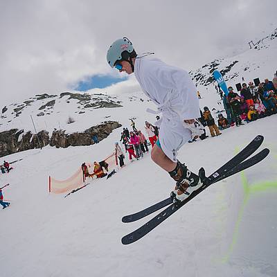 In nur 8 Minuten geht’s von der Talstation auf über 2.200 m – ein technisches Highlight. - Freeride- & Snowpark-Areal
